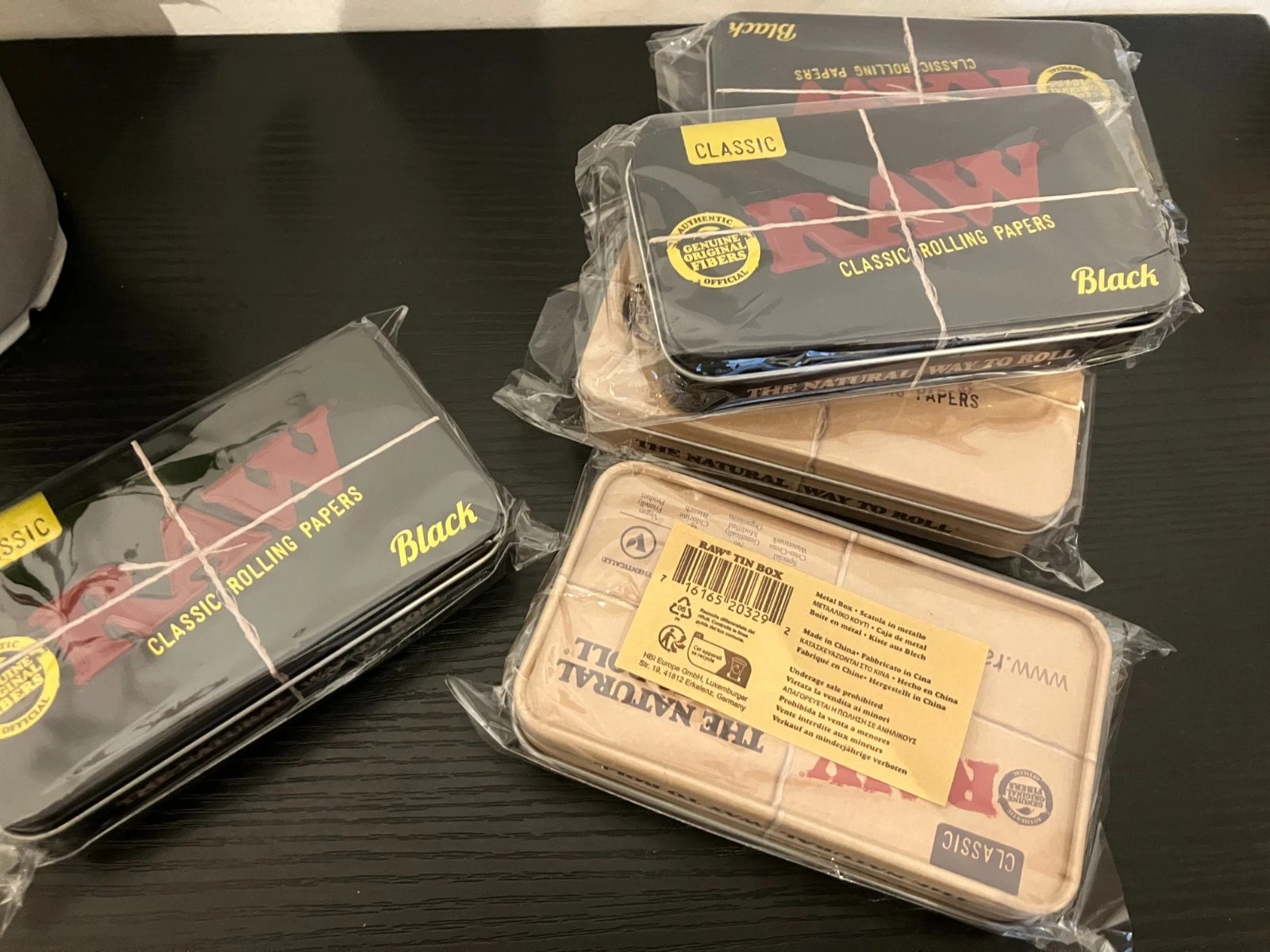 1 x Brown Raw Tin, 1 x Black Raw Tin